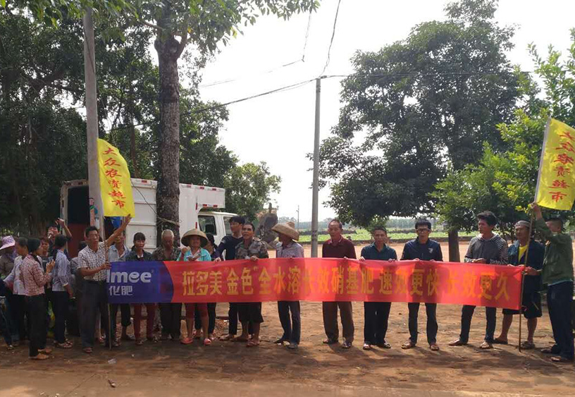- 2017年10月31日,拉多美在徐聞南山鎮包羅園村開展了使用金色葛薯田現場觀摩會,邀請了附近的種植大戶。由拉多美技術人員講解了金色的產品特性及不同作物的使用方法。并采用現場問答方式,解決農戶使用過程中遇到的各種問題,獲得了一致的好評。