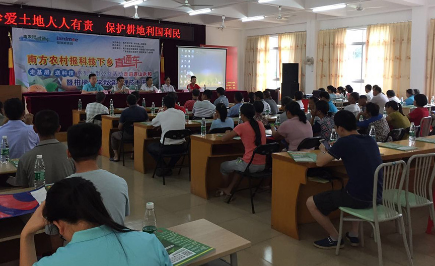 - 拉多美科技下鄉直通車(連山永和鎮) 2017年6月15日,拉多美聯合連山永和鎮政府舉行了科技下鄉直通車,邀請了農科院專家及拉多美技術人員為到場農戶講解果樹管理及用肥。目的是引導永和鎮新種果樹農戶用肥管理意識,科學用肥,科學管理。