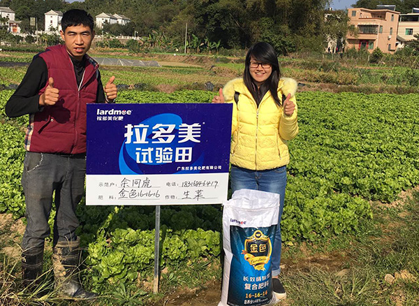 - 【案例說明】 地點:河源市龍川縣; 種植作物:生菜; 施肥情況:追肥,金色16-16-16,15kg/畝; 用戶評價:溶解好,噴滴灌都可以,生菜長勢非常好; 使用效果:吸收快,生長較快,葉片大而厚,葉片光滑,效果理想。