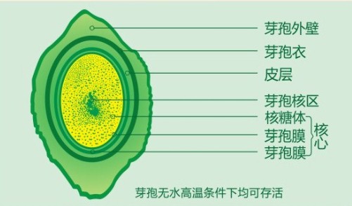 聚谷氨酸由芽孢桿菌通過發酵生產,在發酵過程通過一定的技術手段使芽孢桿菌芽孢化,芽孢無水高溫條件下均可存活。
